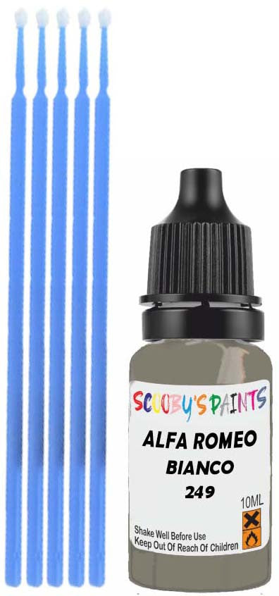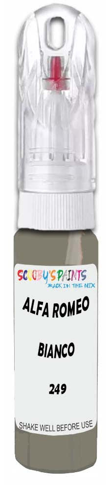 Professionally mixed touch-up paint matched to Alfa Romeo factory colour 249 – Bianco Banchisa for model years 1997–2003. Ideal for repairing stone chips, light scratches and minor blemishes while helping to prevent corrosion.