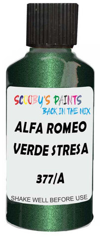 Professionally mixed touch-up paint matched to Alfa Romeo factory colour 377/A – Verde Stresa Metallic for model years 2004–2004. Ideal for repairing stone chips, light scratches and minor blemishes while helping to prevent corrosion.