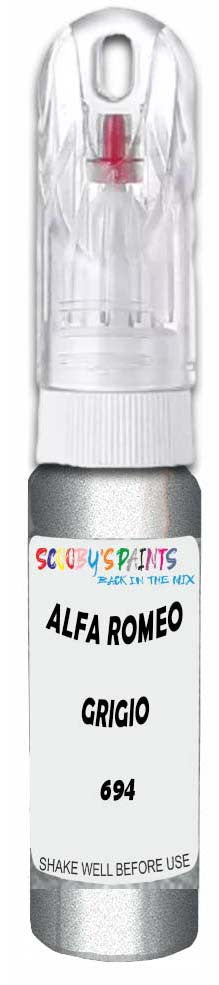 Professionally mixed touch-up paint matched to Alfa Romeo factory colour 694 – Grigio Gonzaga Metallic for model years 2004–2008. Ideal for repairing stone chips, light scratches and minor blemishes while helping to prevent corrosion.