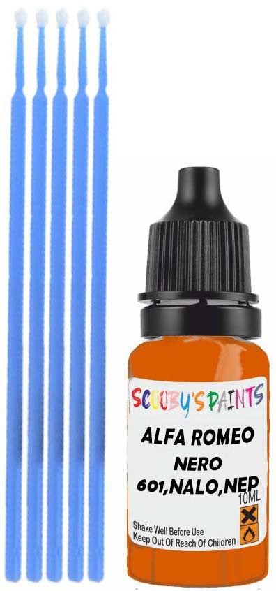 Professionally mixed touch-up paint matched to Alfa Romeo factory colour 601,NALO,NEPA – Nero for model years 1988–2015. Ideal for repairing stone chips, light scratches and minor blemishes while helping to prevent corrosion.