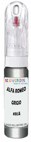 Professionally mixed touch-up paint matched to Alfa Romeo factory colour 651/A – Grigio Stromboli Metallic for model years 2004–2013. Ideal for repairing stone chips, light scratches and minor blemishes while helping to prevent corrosion.