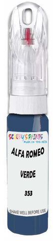 Professionally mixed touch-up paint matched to Alfa Romeo factory colour 353 – Verde Metallic for model years 1991–1993. Ideal for repairing stone chips, light scratches and minor blemishes while helping to prevent corrosion.