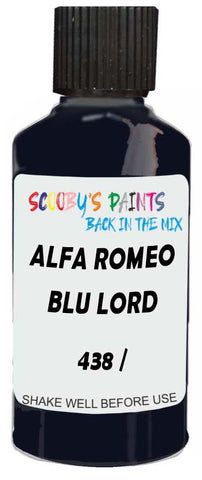 Professionally mixed touch-up paint matched to Alfa Romeo factory colour 438 / BLAL/BAAL – Blu Lord for model years 1988–2005. Ideal for repairing stone chips, light scratches and minor blemishes while helping to prevent corrosion.