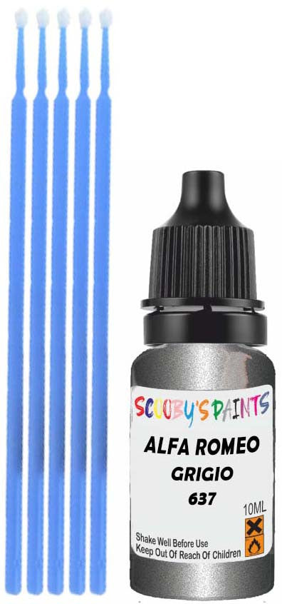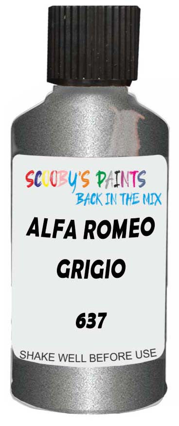 Professionally mixed touch-up paint matched to Alfa Romeo factory colour 637 – Grigio Metallic for model years 1991–1993. Ideal for repairing stone chips, light scratches and minor blemishes while helping to prevent corrosion.