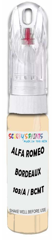 Professionally mixed touch-up paint matched to Alfa Romeo factory colour 103/A / BCMT – Bordeaux Cherry Metallic for model years 1995–1995. Ideal for repairing stone chips, light scratches and minor blemishes while helping to prevent corrosion.