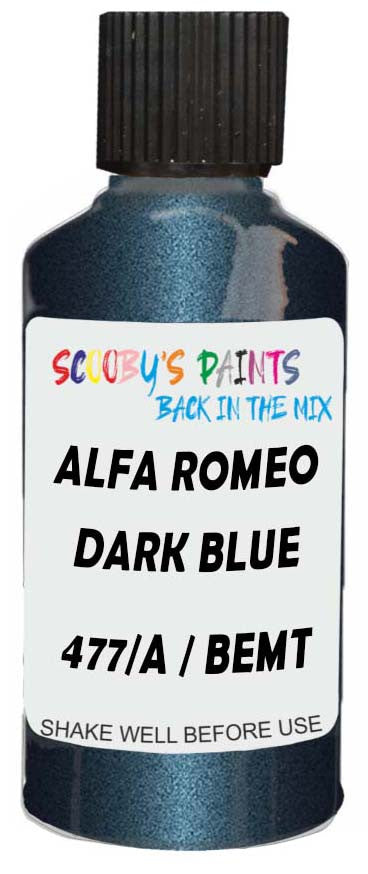 Professionally mixed touch-up paint matched to Alfa Romeo factory colour 477/A / BEMT – Dark Blue Metallic for model years 1992–1998. Ideal for repairing stone chips, light scratches and minor blemishes while helping to prevent corrosion.