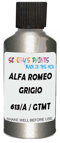 Professionally mixed touch-up paint matched to Alfa Romeo factory colour 613/A / GTMT – Grigio Titanio Metallic for model years 1994–1999. Ideal for repairing stone chips, light scratches and minor blemishes while helping to prevent corrosion.