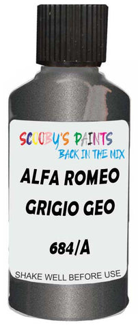 Professionally mixed touch-up paint matched to Alfa Romeo factory colour 684/A – Grigio Geo Metallic for model years 2004–2004. Ideal for repairing stone chips, light scratches and minor blemishes while helping to prevent corrosion.