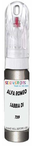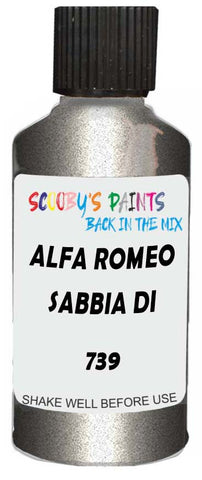 Professionally mixed touch-up paint matched to Alfa Romeo factory colour 739 – Sabbia Di Luna Metallic for model years 2004–2004. Ideal for repairing stone chips, light scratches and minor blemishes while helping to prevent corrosion.