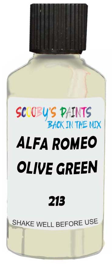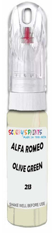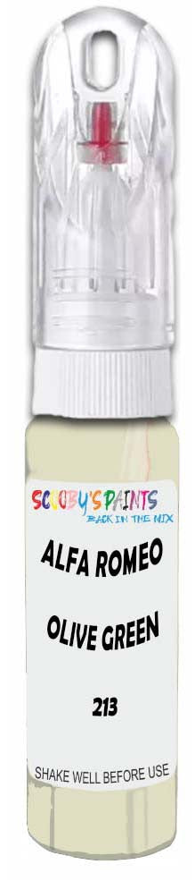 Professionally mixed touch-up paint matched to Alfa Romeo factory colour 213 – Olive Green Metallic for model years 1965–1977. Ideal for repairing stone chips, light scratches and minor blemishes while helping to prevent corrosion.