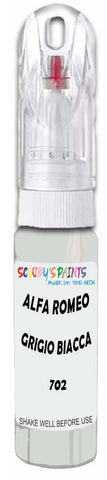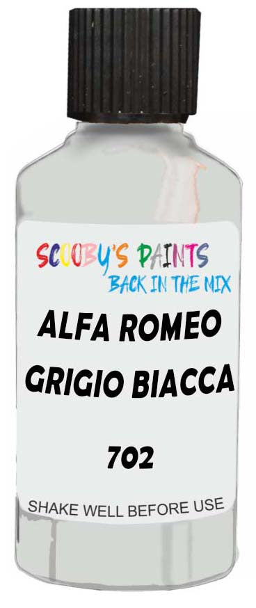 Professionally mixed touch-up paint matched to Alfa Romeo factory colour 702 – Grigio Biacca for model years 1950–1968. Ideal for repairing stone chips, light scratches and minor blemishes while helping to prevent corrosion.