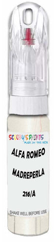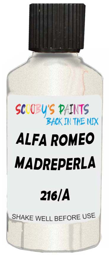 Professionally mixed touch-up paint matched to Alfa Romeo factory colour 216/A – Madreperla White Tri-Coat for model years 2014–2019. Ideal for repairing stone chips, light scratches and minor blemishes while helping to prevent corrosion.
