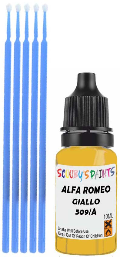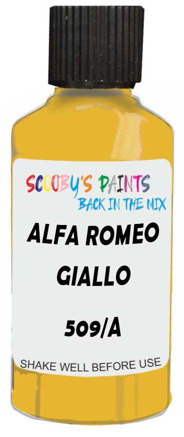 Professionally mixed touch-up paint matched to Alfa Romeo factory colour 509/A – Giallo Prototipo for model years 2016–2019. Ideal for repairing stone chips, light scratches and minor blemishes while helping to prevent corrosion.