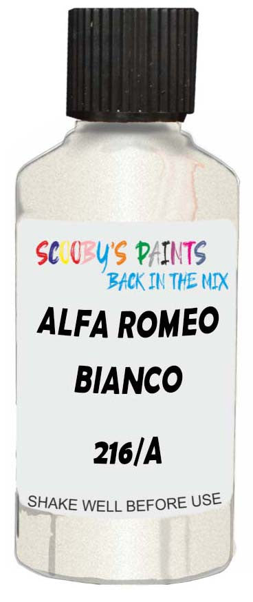 Professionally mixed touch-up paint matched to Alfa Romeo factory colour 216/A – Bianco Madreperla Metallic for model years 2014–2019. Ideal for repairing stone chips, light scratches and minor blemishes while helping to prevent corrosion.