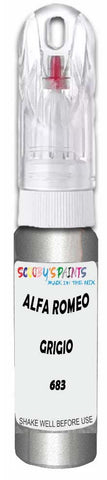 Professionally mixed touch-up paint matched to Alfa Romeo factory colour 683 – Grigio Chiaro Met Opaco for model years 1990–1990. Ideal for repairing stone chips, light scratches and minor blemishes while helping to prevent corrosion.