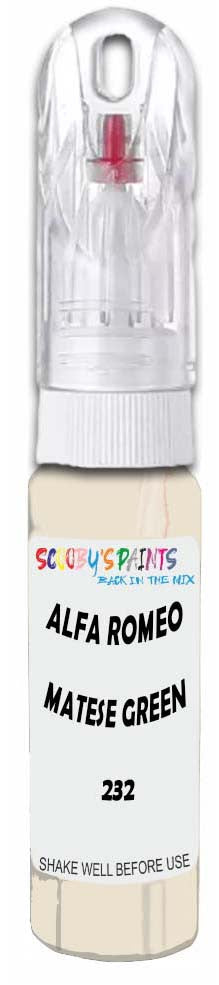 Professionally mixed touch-up paint matched to Alfa Romeo factory colour 232 – Matese Green for model years 1972–1984. Ideal for repairing stone chips, light scratches and minor blemishes while helping to prevent corrosion.