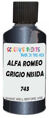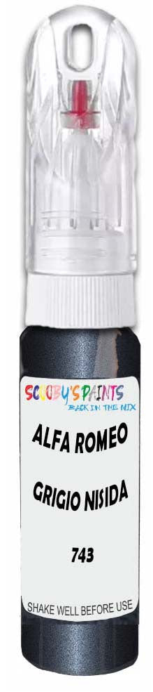 Professionally mixed touch-up paint matched to Alfa Romeo factory colour 743 – Grigio Nisida Metallic for model years 1972–1984. Ideal for repairing stone chips, light scratches and minor blemishes while helping to prevent corrosion.