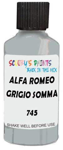 Professionally mixed touch-up paint matched to Alfa Romeo factory colour 745 – Grigio Somma for model years 1972–1984. Ideal for repairing stone chips, light scratches and minor blemishes while helping to prevent corrosion.