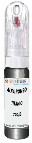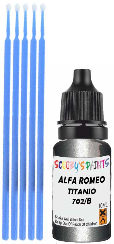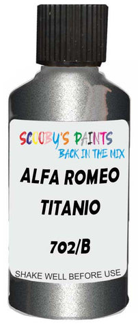 Professionally mixed touch-up paint matched to Alfa Romeo factory colour 702/B – Titanio Metallic Opaco for model years 2010–2010. Ideal for repairing stone chips, light scratches and minor blemishes while helping to prevent corrosion.