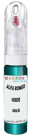 Professionally mixed touch-up paint matched to Alfa Romeo factory colour 353/A – Verde Sargassi Metallic for model years 1998–2001. Ideal for repairing stone chips, light scratches and minor blemishes while helping to prevent corrosion.