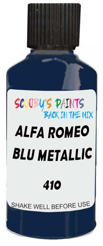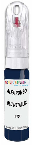 Professionally mixed touch-up paint matched to Alfa Romeo factory colour 410 – Blu Metallic Opaco for model years 2005–2005. Ideal for repairing stone chips, light scratches and minor blemishes while helping to prevent corrosion.