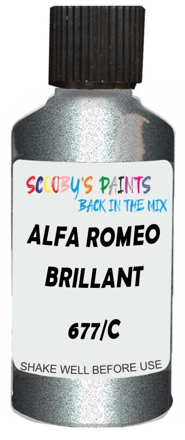 Professionally mixed touch-up paint matched to Alfa Romeo factory colour 677/C – Brillant Silver Metallic for model years 2018–2018. Ideal for repairing stone chips, light scratches and minor blemishes while helping to prevent corrosion.