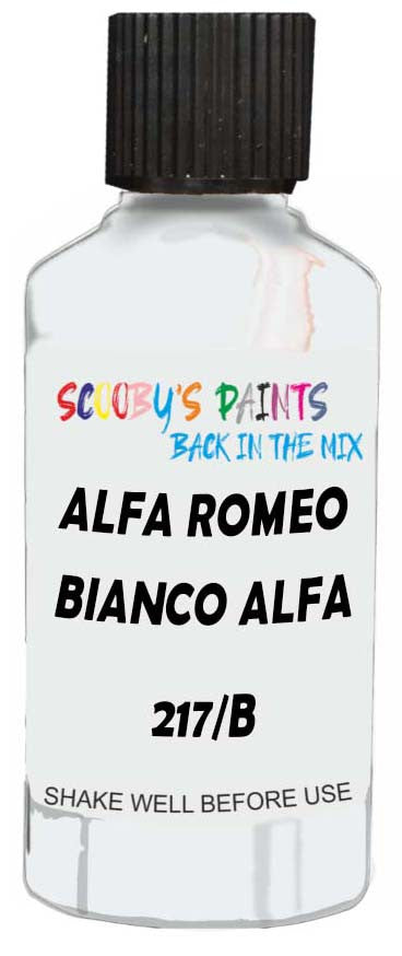 Professionally mixed touch-up paint matched to Alfa Romeo factory colour 217/B – Bianco Alfa for model years 2015–2022. Ideal for repairing stone chips, light scratches and minor blemishes while helping to prevent corrosion.
