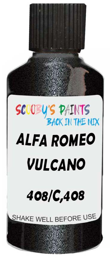 Professionally mixed touch-up paint matched to Alfa Romeo factory colour 408/C,408 – Vulcano Black Metallic for model years 2016–2023. Ideal for repairing stone chips, light scratches and minor blemishes while helping to prevent corrosion.