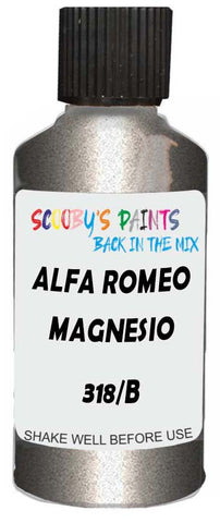 Professionally mixed touch-up paint matched to Alfa Romeo factory colour 318/B – Magnesio Grey Metallic for model years 2010–2017. Ideal for repairing stone chips, light scratches and minor blemishes while helping to prevent corrosion.