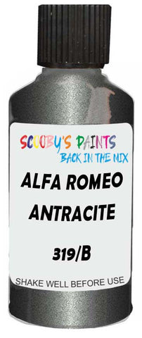 Professionally mixed touch-up paint matched to Alfa Romeo factory colour 319/B – Antracite Grey Metallic for model years 2010–2016. Ideal for repairing stone chips, light scratches and minor blemishes while helping to prevent corrosion.