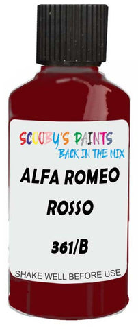 Professionally mixed touch-up paint matched to Alfa Romeo factory colour 361/B – Rosso Competizione Pearl for model years 2015–2022. Ideal for repairing stone chips, light scratches and minor blemishes while helping to prevent corrosion.