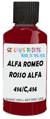 Professionally mixed touch-up paint matched to Alfa Romeo factory colour 414/C,414 – Rosso Alfa for model years 2015–2022. Ideal for repairing stone chips, light scratches and minor blemishes while helping to prevent corrosion.