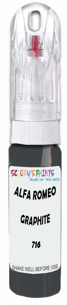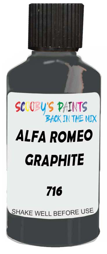 Professionally mixed touch-up paint matched to Alfa Romeo factory colour 716 – Graphite Grey for model years 1957–1977. Ideal for repairing stone chips, light scratches and minor blemishes while helping to prevent corrosion.