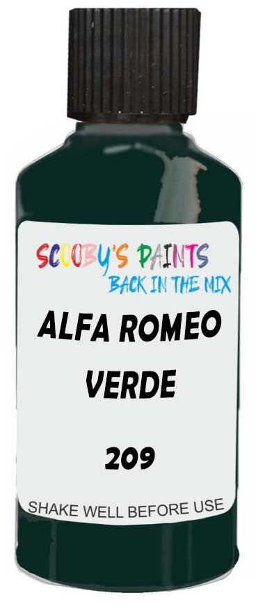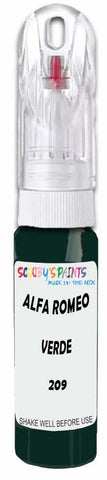 Professionally mixed touch-up paint matched to Alfa Romeo factory colour 209 – Verde Muschio for model years 1962–1993. Ideal for repairing stone chips, light scratches and minor blemishes while helping to prevent corrosion.