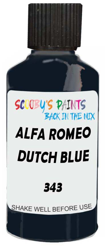 Professionally mixed touch-up paint matched to Alfa Romeo factory colour 343 – Dutch Blue for model years 1962–1985. Ideal for repairing stone chips, light scratches and minor blemishes while helping to prevent corrosion.