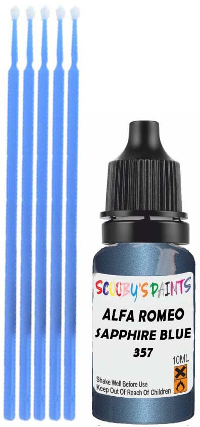 Professionally mixed touch-up paint matched to Alfa Romeo factory colour 357 – Sapphire Blue Metallic for model years 1966–1980. Ideal for repairing stone chips, light scratches and minor blemishes while helping to prevent corrosion.