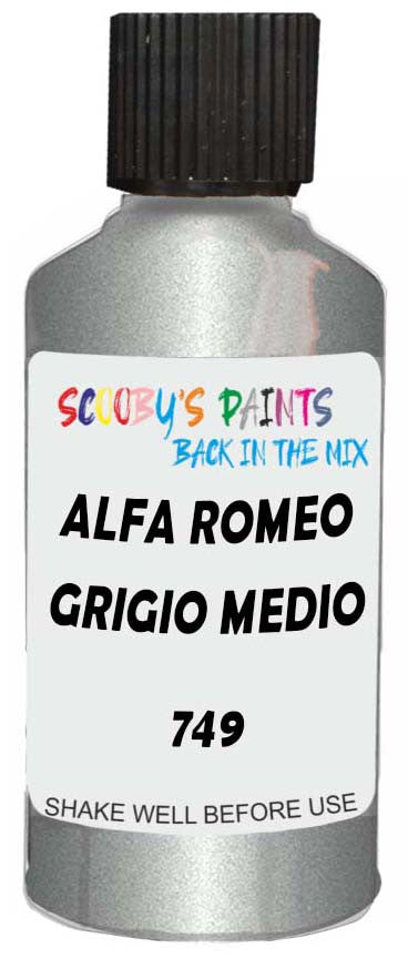 Professionally mixed touch-up paint matched to Alfa Romeo factory colour 749 – Grigio Medio Metallic for model years 1966–1980. Ideal for repairing stone chips, light scratches and minor blemishes while helping to prevent corrosion.