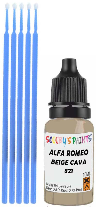 Professionally mixed touch-up paint matched to Alfa Romeo factory colour 821 – Beige Cava for model years 1966–1977. Ideal for repairing stone chips, light scratches and minor blemishes while helping to prevent corrosion.