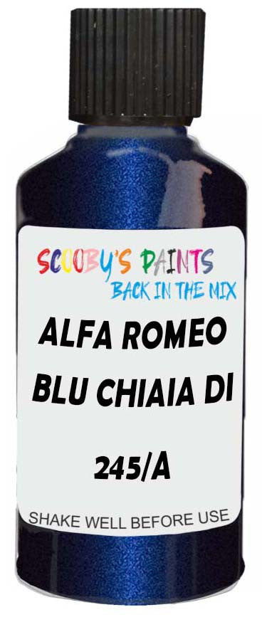 Professionally mixed touch-up paint matched to Alfa Romeo factory colour 245/A – Blu Chiaia Di Luna Metallic for model years 2005–2008. Ideal for repairing stone chips, light scratches and minor blemishes while helping to prevent corrosion.