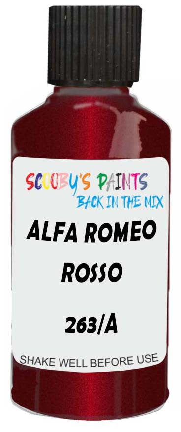 Professionally mixed touch-up paint matched to Alfa Romeo factory colour 263/A – Rosso Radicofani Metallic for model years 2005–2007. Ideal for repairing stone chips, light scratches and minor blemishes while helping to prevent corrosion.