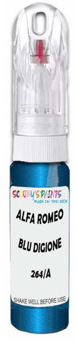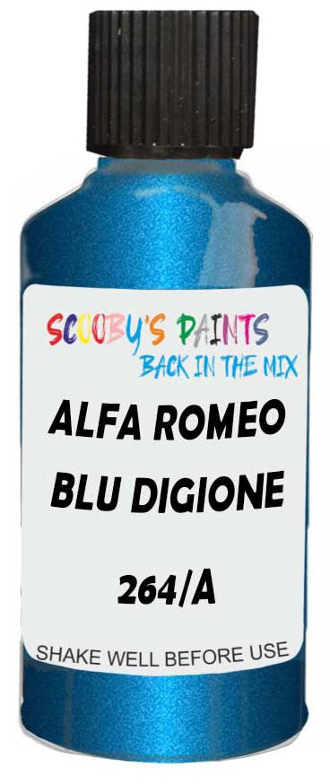 Professionally mixed touch-up paint matched to Alfa Romeo factory colour 264/A – Blu Digione Metallic for model years 2005–2007. Ideal for repairing stone chips, light scratches and minor blemishes while helping to prevent corrosion.