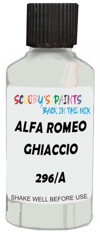 Professionally mixed touch-up paint matched to Alfa Romeo factory colour 296/A – Ghiaccio White for model years 2008–2016. Ideal for repairing stone chips, light scratches and minor blemishes while helping to prevent corrosion.