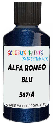 Professionally mixed touch-up paint matched to Alfa Romeo factory colour 567/A – Blu Oltremare Perl for model years 2005–2017. Ideal for repairing stone chips, light scratches and minor blemishes while helping to prevent corrosion.