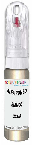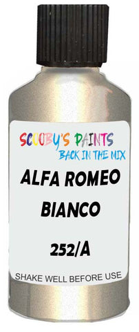Professionally mixed touch-up paint matched to Alfa Romeo factory colour 252/A – Bianco Gardenia Metallic for model years 2008–2014. Ideal for repairing stone chips, light scratches and minor blemishes while helping to prevent corrosion.