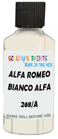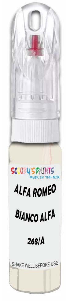 Professionally mixed touch-up paint matched to Alfa Romeo factory colour 268/A – Bianco Alfa for model years 2016–2019. Ideal for repairing stone chips, light scratches and minor blemishes while helping to prevent corrosion.