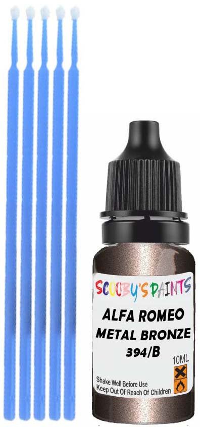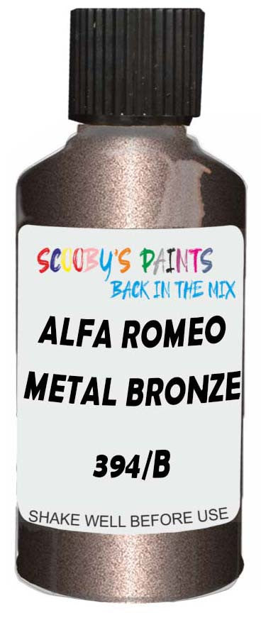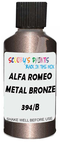 Professionally mixed touch-up paint matched to Alfa Romeo factory colour 394/B – Metal Bronze Metallic for model years 2011–2015. Ideal for repairing stone chips, light scratches and minor blemishes while helping to prevent corrosion.