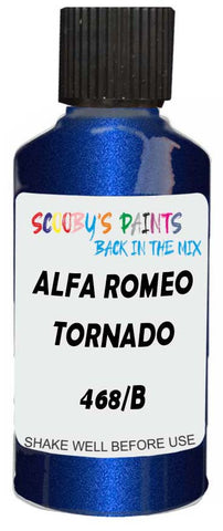 Professionally mixed touch-up paint matched to Alfa Romeo factory colour 468/B – Tornado Blue Metallic for model years 2010–2019. Ideal for repairing stone chips, light scratches and minor blemishes while helping to prevent corrosion.