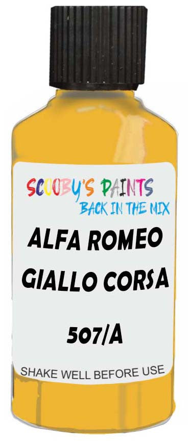 Professionally mixed touch-up paint matched to Alfa Romeo factory colour 507/A – Giallo Corsa for model years 2008–2014. Ideal for repairing stone chips, light scratches and minor blemishes while helping to prevent corrosion.