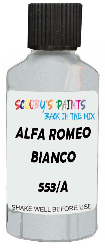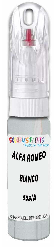 Professionally mixed touch-up paint matched to Alfa Romeo factory colour 553/A – Bianco Cristallo Metallic for model years 2015–2015. Ideal for repairing stone chips, light scratches and minor blemishes while helping to prevent corrosion.