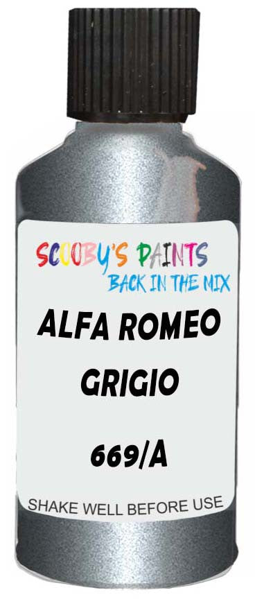 Professionally mixed touch-up paint matched to Alfa Romeo factory colour 669/A – Grigio Grafite Metallic for model years 2008–2015. Ideal for repairing stone chips, light scratches and minor blemishes while helping to prevent corrosion.